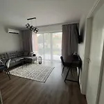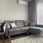 A mini-kitchen with a fridge, an oven, and glassware is available in the apartment, along with coffee and tea making equipment. The 44 m^2 apartment is at the doorstep of Elblaska bus station.